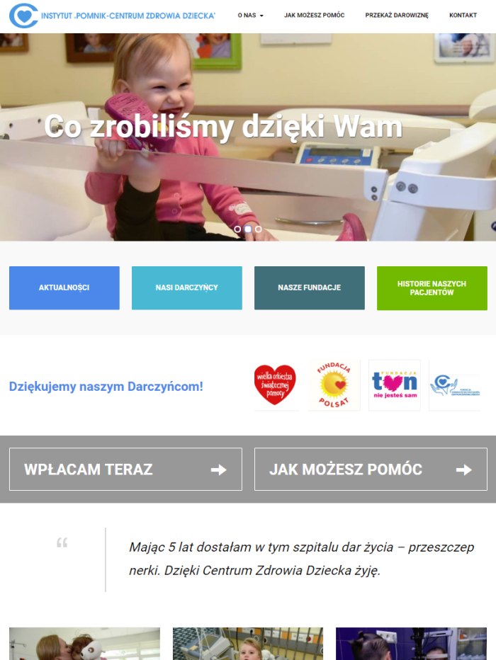 Strona internetowa przeznaczona dla darczyńców IPCZD