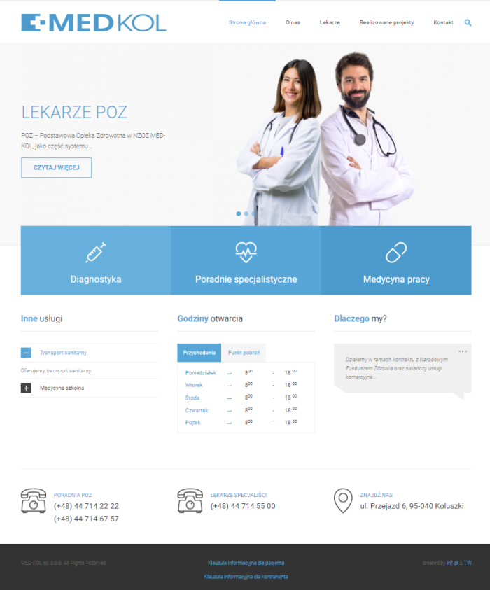 Projekt architektury strony, wdrożenie CMS. Stała praca w dziale PR.